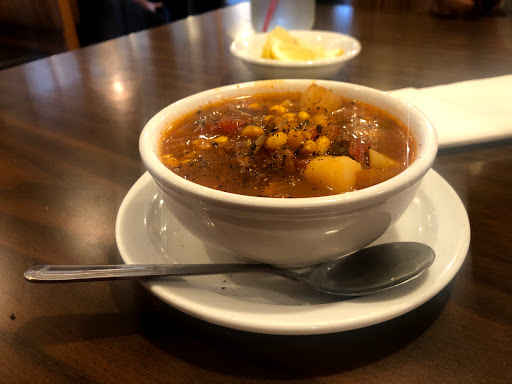 Submitted an order online on a Thursday evening at 6 pm. Said that it would be ready in 35 minutes. The order was three breakfasts, three desserts, and one family size soup. Waited over an hour at the restaurant for our order because a staff member had messed up several orders. Received no discount. Missing one side of bacon, one dessert, and receive no utensils. Food was good, which was the only saving grace.