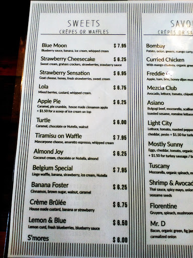 Updated 08/14/16 Cafe Mezcla is still a go to spot for me but its impossible to ignore the long wait times for food. If youre coming here on a Sunday morning for breakfast or brunch, itll be a struggle to find a seat. It also takes a super long time to get your food, even if its a pretty basic order. Food is still great though, but -1 star for the lackluster wait times and seating availability. ---------- Cafe Mezcla is awesome-- the food is great, atmosphere is nice, and the staff is wonderful. This is the go-to place in the area if youre looking for a local coffee/brunch spot thats not your typical DD/Starbucks. They have crepes, waffles, sandwiches, omelettes, and more. I am a big fan and always order their chicken and waffles-- theyre simply amazing. Drinks here are great as well! The place is a bit small so seating can be cramped but Ive never had an issue. The vibe is casual as well and you order the food yourself. The only drawback is that there are normally only 2-3 employees working at once and food can take some time to be prepared.