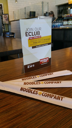 I have eaten at many Noodles & Cos. Ive been at this location twice. The first time I wouldve given it 4 stars. The second time wouldve been 1 star. The most recent trip to this Noodles & Co was pretty darn bad. I felt like I was on an episode of Hells Kitchen. I got Penne Rosa. The chicken looked mutilated. It looked like freezer-burnt chicken that was overcooked in the microwave and then stomped on with someones shoe. It was quite gross. I almost couldnt eat the plate because of how gross the chicken was. The pasta and other vegetables were OK though. The soda machine tasted weird as well (maybe the syrup was running low?). Also the service was quite lackluster. I asked for something and it seriously took 15 minutes to come out when they said it would be just a moment. Pretty disappointed. Not sure if Ill give this location another shot.
