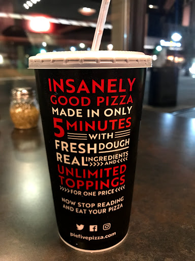 Great custom pizza. Have it your way! They make you exactly the pizza you want right in front of you with (apparently) fresh ingredients. My pizza was very good. The friend with me - his first Pie Five experience - said his was very good. Clean restaurant. Good food in a timely manner at a reasonable price. Outside seating in a beautiful day. What more could you ask for?