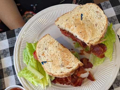 The people who work here are so sweet! How can the owners serve a sandwich that is the size of my fist...a $10 BLT! It consists of maybe 2 1/2 slices of bacon on a decent white toasted bread and it isnt bad. But its small. And thats all you get.....if you want chips its $1.50 extra. Dont expect a pickle, some slaw or hush puppies. Go to the food lion if you have a toaster and a microwave. Its a sad disgrace to put forth no respect on the plate for the price they charge. But, the people are nice and the place is clean and cute!