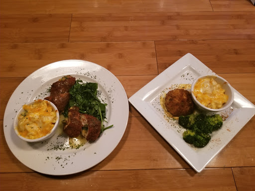Had the fried pickle chips and Philly cheese steak eggrolls as an appetizer. Those were excellent. Bar staff was good. The place was clean and nicely decorated. I Ordered the $20 fresh salmon, grilled shrimp and sauteed spinach for entree. Highly disappointed. Their idea of grilled shrimp is one shrimp on top of the salmon filet, which is 8oz but it definitely fresh. The salmon was the only highlight of my entree. The spinach was not drained, and filled my plate with water. Which watered down the dish. The lump crab sauce was ok. Not worth $20. Ill stick with bar food here from now on.