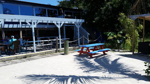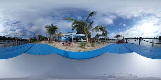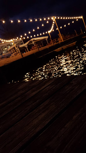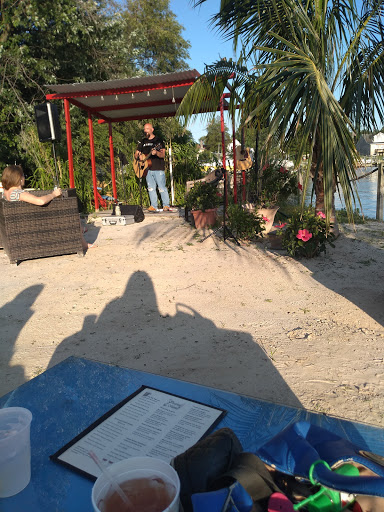 Great outdoor bar and patio with sand , like being at the beach. Place to dock the boat.