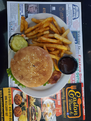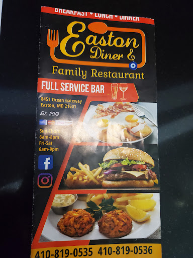 We were staying in Easton for the 4-H Maryland State Archery Competition. We decided to eat at the Easton Diner over KFC. It was a BIG mistake. The meat loaf with mash potatoes and gravy was gross. The meat tasted like it was made in a laboratory. Nothing like Bob Evans meatloaf or homemade. The mash potatoes were fake, and out of a box. Terrible texture and taste. Although I will say, the fish was good, and the burgers were good. Everything was ridiculously overpriced considering the quality of the food. We will NOT be coming back to this place...