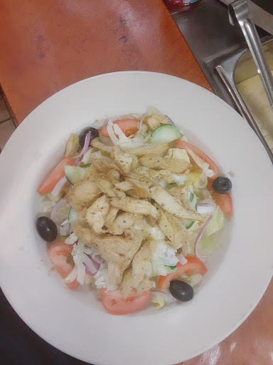 Upon entering, the smell of garlic permeated the air, and when I walked up to the counter I saw the steaming garlic bread hot out of the oven and knew it was the culprit. I wanted pizza, but ordered a Greek salad and Maryland crab cakes (when in Rome....). Extraordinary! The best dressing on the salad, ever, delectable crab cakes, and the best garlic bread I ever had in my life! Lucky find after traveling 11 hours! Thx for the suggestion to the friendly man behind the counter.
