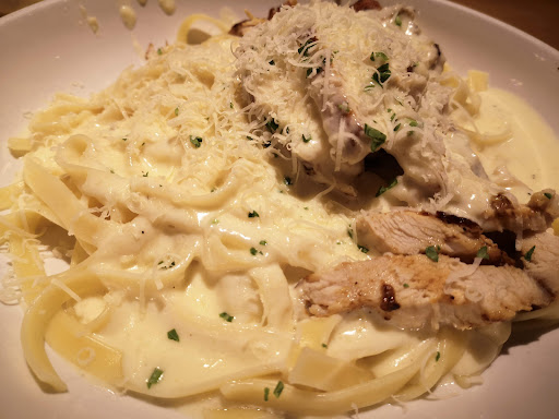 There was a screaming baby ruining the meal at the next table over and the waitress forgot our waters. Brought the waters over after our meal was already delivered. Got the wrong dish. Took forever to being the right dish out. The menu is flawed. Theres seafood Alfredo (with shrimp and scallops) and then shrimp Alfredo. Very easy to confuse if you arent aware of the menu change.