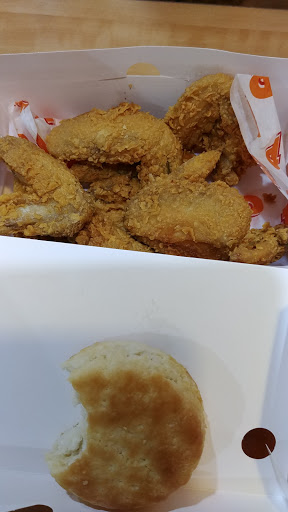 Probably the worst Popeyes Ive ever been too. Should have left when I saw all the flies buzzing around, but I figured I was there. Chicken was so-so. Pieces were small, white meat was dry, breading was soggy. Biscuits were like rocks. 1/2 thick flat rocks. Wanted the mac and cheese, but it was "in the back warming up" and I didnt want to wait, so I settled for the red beans and rice which you would think would be pretty standard fare at a Popeyes, but not here in Elkton. It was more like bean soup with a few grains of rice.