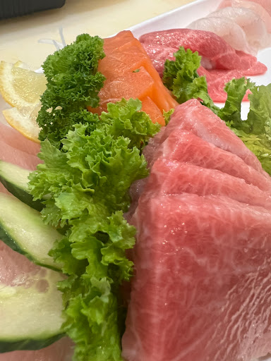 I usually meet up here with my husband and some of his work colleagues during lunch for their buffet. They have a good selection of sushi and are very fast at replacing/refilling up the sushi plates at the bar, something that many other sushi buffets Ive been to struggle to accomplish on a regular basis. The ingredients are fresh and even their non-sushi selections are appetizing. The price is quite reasonable (about $13 per person) and I found the staff to be very friendly. Since it tends to get busy very quickly about 15 minutes after they open (at 11:30am), they may take a minute before asking you if youd like to drink anything, but it hasnt happened often to me. Theyre also overall very good at keeping peoples glasses full.