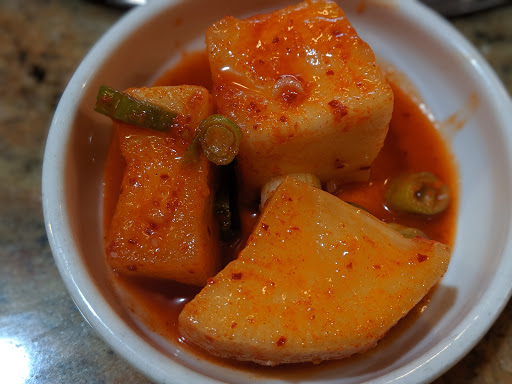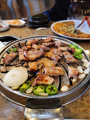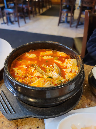 Very good authentic Korean food, reminds me of when Ive been stationed to Korea, and also studied there in the past. Feels like the place was picked up by a giant in Seoul and dropped here. Complete with the table button you press for service (the wait staff will mostly leave you alone unless you press the button, as is common in Korea) and the little digestive aid yogurt drinks after your meal. Only gripe is that we always have to ask for rice, but it may be because other white people dont eat their bap (rice) and the restaurant doesnt want to waste rice. Have eaten here several times over the course of several years and is always good.