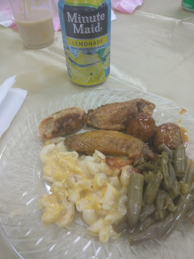 Service nice and quick, but the food was tasteless. Potatoe salad was store bought, peach cobbler was sugarless and doughy, mac and cheese smh. Very disappointed.