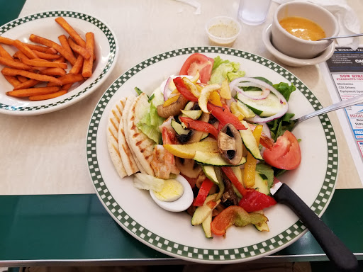 This place was terrible. A Saturday night at a diner and they started cleaning up the restaurant at 10:20pm. Their website says it closes at 12. My girlfriend and I went in around 9:30. The panini she got was nothing but grissels in the meat and had no flavor. We felt rushed the whole time. They started turning off lights inside while other customers and myself were still inside. And locked out other customers. Food was not worth the price. It was hard to get a simple refill on drinks too. Defiantly not going back.
