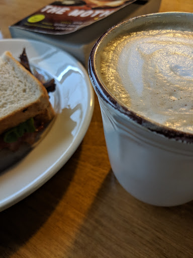 Good coffee. I love their "pay it forward" wall! You can buy something for someone in the future and put a little note on the wall and others can use it to get things :D Nice people who work here too, and a good place to get a nice afternoon coffee.