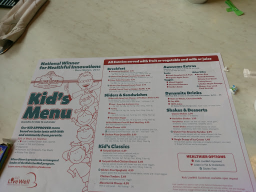 Silver Diner USED to have a great menu and great diner food...now, not so much, at least thats the review for this location. We had visited the Double T diner over by FSK mall about a month prior to our Silver Diner visit; we expected a similar experience. We did not have such an experience. The food was awful. That is no understatement. Literally: bad, really, really bad. Dried out, not flavorful, poorly executed (think of it like one of those fancy restaurants that makes your meal look like artwork). However, we did not complain because, yeah, have you seen the movie "Waiting?" One does not complain about their food at a restaurant unless absolutely necessary. Further, the menu was weak in stature, and prices were roughly a 1/3 higher then what youd expect a "diner" to charge. The only positive notes were that the staff was very friendly and there was now wait; those were the only pluses of the night. I dont know, maybe its just this Silver Diner but theyre trying too hard. Everything is listed as "organic" or the eggs are listed as "Amish raised." Come on Silver Diner, why so "trendy" and "uppity?" Think of this place as trying to smash a diner experience with an elegant 5 star, artsy, restaurant. That is what this location has tried to pull off...why, YOURE A DINER! If you wanted this feel, they should have built it in Urbana, the most uppity place around; but I digress. For my family of 4 (and the kids ate off the kids menu), plus the $5 discount for installing their worthless app (install their app, get on their mailing list - used fake information, get $5 off your meal), our total was still $45 before tip. I do have to mention we did get roped into the cheesy-fries appetizer so, that could have knocked about $8 off our total, but still...pretty pricey compared to our other Frederick diner experience: I can take my family to Double T and order similar, better tasting, diner friendly items for about, again, a 1/3 less. For a great diner experience, well stick to Double T by FSK; a phone-book for a menu, cheaper prices, good food, and no trendy, hip looking, plates, bowls, organic, Amish raised, artsy feel, etc. Just a normal diner experience. Thanks for ruining a good evening Silver Diner, youre (this location) terrible!