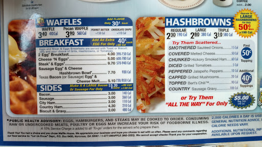 Just like back home. Im always amazed at how consistent and familiar Waffle House can be. My All Star breakfast has remained the same for years. And no matter where I go, the server knows what I want. This is the closest one on the Maryland side. Get there early for breakfast on the weekends. If you have to wait, theyll bring you coffee.