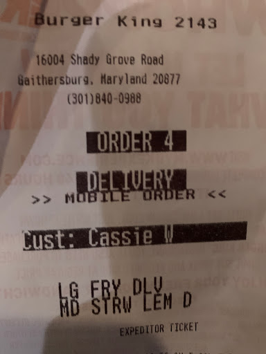 This is the Best Burger king out of 100s that I have been to over the past 30 years. i used to like this one but due to significant distance from my home I seldom come here. Tonight I came to the Gaithersburg area and havr to arrwnx the BWI airport at about midnight to pick up my son coming from Chicago. So, i figured it would be good to skt and eat a little bit here at the BK and then go to the BWI airport. what a beautiful, clean, and comfortable facility. They have two sofa-style chairs that someone can sit in and watch the sports. I seldom watch Basketball. But the game on yheir bigscreen here watching from the sofa while munching on the food was one of the best experience I have had in any Burger King in US. I have visited BKs from AK to WY almost all states.. Again thanks to this Burger King Store #2143. subijoy Dutta Crofton, MD