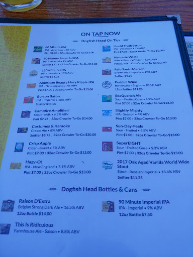 Dogfish Head is probably my favorite restaurant. Every time I visit the Gaithersburg location, its a fantastic time with the best food and beer around. Portion sizes are excellent, and the beer speaks for itself. You cant go wrong with anything on their menu. I would recommend this restaurant to anyone for any occasion. Their staff is always great and knowledgeable, and can answer any questions about any beers you want to taste. Absolutely love it and it deserves 5 stars if not more. My fiance and I have been lucky enough to grab Dogfish Head to cater our wedding, and Sam and Joe have been nothing, but the most enjoyable experience of putting together our wedding.