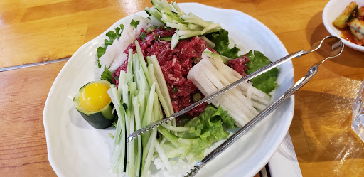 Has a very reliable, but fairly expensive, lunch buffet. The layout and items are always the same, and have been for years, but the quality is very good, especially for the Korean dishes. Look for the ojinga dup bap and jae yook. The service is friendly and speedy. At dinner they have a variety of decent and usually good Korean entrees.