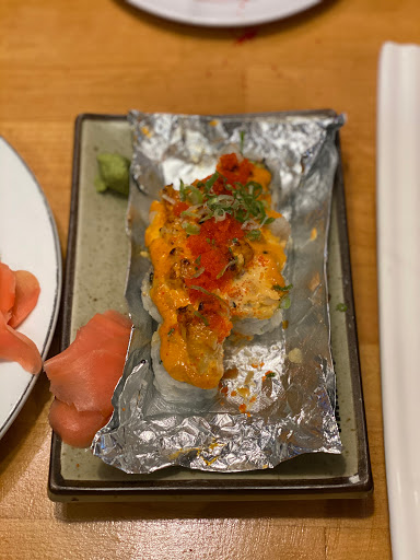 Went for sushi, got my 2 standard rolls and a wildcard, pretty fresh, shape and balance of cuts were off and not consistent, rolls were tasty, fresh, had subtleties, were pretty nice, spicy tuna was a little too spicy. Service was excellent, perfectly attentive, but not overly attentive. Decor was solid w character, restrooms were clean, entryway is gorgeous and welcoming on the way in and good willing on the way out. Folks (employees?) smoking on bench right by the front door was unbecoming and making my review take a hit for the worse; aesthetically unenriching to the overall experience...maybe theres a back door for the same purpose? Im less inclined to go back for sushi but intrigued by the possibilities for their lunch buffet.