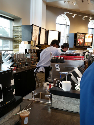 For a Starbucks this is a nice one. The space is nice with super high ceilings. Its a busy Starbucks and there was consistently a line the three hours I sat here and worked on a Saturday morning. If youre looking for a quiet space, this is not the place. Due to the number of customers and high ceilings it can get loud in here. Coffee I had was a standard Sbucks coffee. Nothing special.