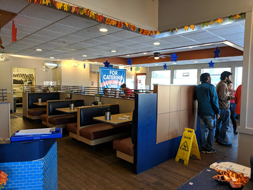 long wait. they dont take your name they give you a piece of paper with a name like Batman, superman, tiger woods really how juvenile not to mention degrading. old seats that hurt your rear end. booth seat back that is falling apart and hit you in the back when people are sitting behind you. what a dump.