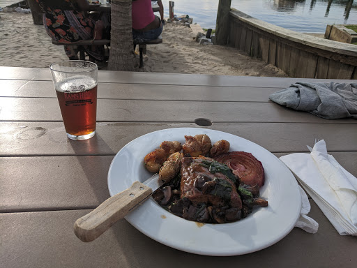 Sad! Stopped in for a bite to eat via boat. Staff is friendly and youre greeted with a smile. BUT...do not ask for a Coors Lite & do NOT order the Don something salad with the grilled shrimp and scallops, salsa & balsamic vinaigrette! I believe the price was either $12.95 or $14.95. When the salad came there were 5 grilled shrimp smaller than a teeny, tiny caterpillar and the scallops were supposed to be bay scallops. They were smaller that the tip of a small handed persons little finger and there were maybe 6-7 bay scallops on this bed of lettuce. There was no dressing nor was there any salsa! I asked for Coors Lite. They dont carry Coors Light! The folks in this area work very hard for their money and with these high costs for food & drink doesnt seem right! You cant take part in their football specials either unless you sit inside in front of a TV! So this means that you cant sit outside in the beautiful sand covered ground with nice umbrella coverage and fan cooled tables! Sad! Oh and did I mention the "manager" spoke with us and of course he has never had a complaint about this particular salad before, but he hadnt actually seen the salad either! I ordered something else, as I was very hungry. The chicken flatbread was ok, but nothing to write home to mom about! I dont think well be stopping by via boat or land vehicle any time soon! Too many other great restaurants around with responsible prices and much better food!!!. Its all about the money and not the patron!!! :(