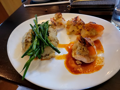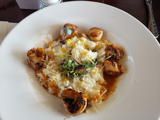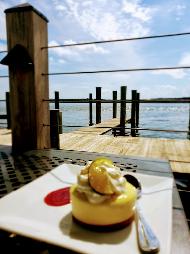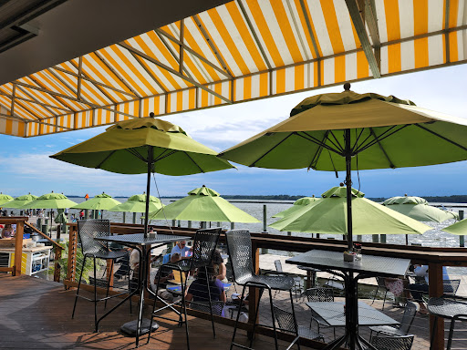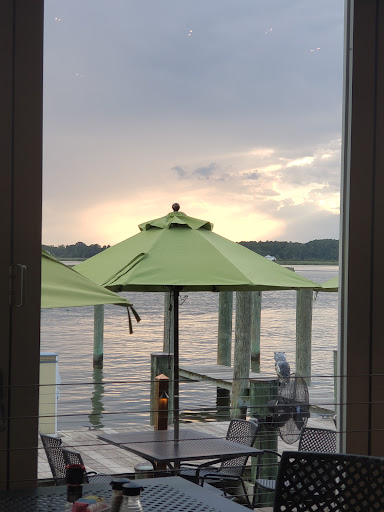 Dog friendly, indoor outdoor, bay front seafood restaurant located next to The Jetty Restaurant Bar and Grill and the Hilton Garden Inn. There is amble parking with an attendant during busy periods. Dress style ranges from beachy casual to dressy. Beautiful views from many locations are available. The best seating is outdoor on the deck which is less crowded and less noisy. Second best location would be the covered deck. The inside seating area is crowded and noisy. Service was good, waitress was attentive and keep checking on everything. Food was delicious and portions could be larger. Asparagus is the main option, so ask to substitute for more corn relish for those that dont like asparagus. Boaters, jet skiers and canoers arrived to dine or pick up orders. There is an indoor outdoor bar, areas for private events. Worth at least one visit that will be positive and memorable.