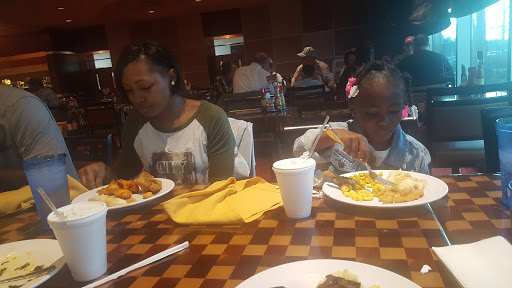 Decided to eat here on a late Saturday night with my girlfriend. The atmosphere seemed uneasy. There was a police officer on duty there. From the looks of things it was very much needed. We had to ask for napkins and silverware several times while eating our appetizer. I guess they decided they were going to bring it when they wanted to because we didnt we receive them until they brought the entrees out. I ordered the Jack Daniels Chicken & Shrimp. The chicken was tough and dry. A person other than our waitress brought our food out. I asked him, "Could I have some cocktail sauce please?" He responds with, " Yeah shell get it," and walked away. It was rude to say the least. I will never eat there again.