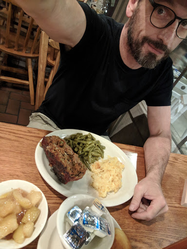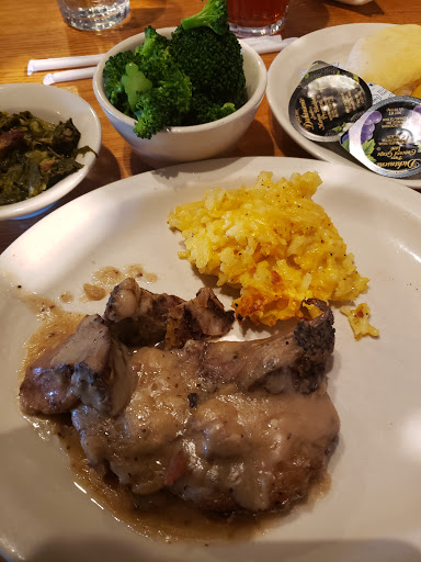 Standard Cracker Barrel fare, but theyve got the Campfire chicken meals going this time of year and I love it. Juicy, tasty meal, chicken not dry, plenty of food at a very reasonable price. Service was very friendly and fast though the place was packed on Saturday night.