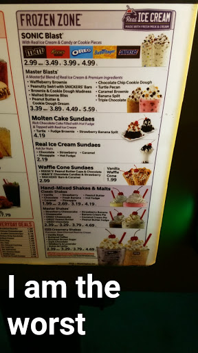 Its sonic good. Love the drink combination choices. The different hot dogs are all good. Gotta get Frito chili pie with onions every time. Service is fast.