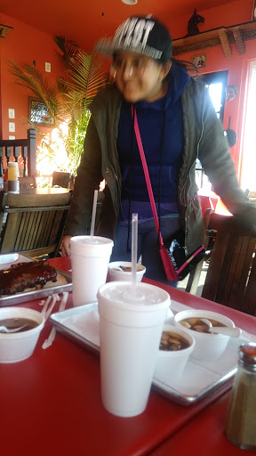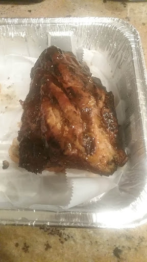 My son and I decided to try this place for dinner. At their recommendation, we both had the rack of ribs and they were amazingly good. For sides we tried coleslaw (good), pork & beans (very good), fries (very good), and green beans (bland). We also tried some bay wings which were full sized wings and delicious. As a bonus, for eating in, you get free soup and it is AMAZINGLY good. They say its made from the previous days meat drippings. The wait staff is very friendly and the prices are very reasonable.