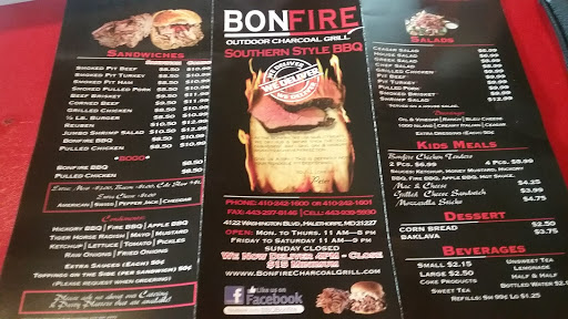 The restaurant is small and cozy. Decor is very warm and accommodating and inviting. Staff is very friendly and nice. Food is very good and tasty. BYOB. You simply can not go wrong with the Bonfire. And in my opinion, it is the only restaurant, Pit Beef place in the area unlike any other pit beef place. If you do not give this place a try, you suck at eating good food!
