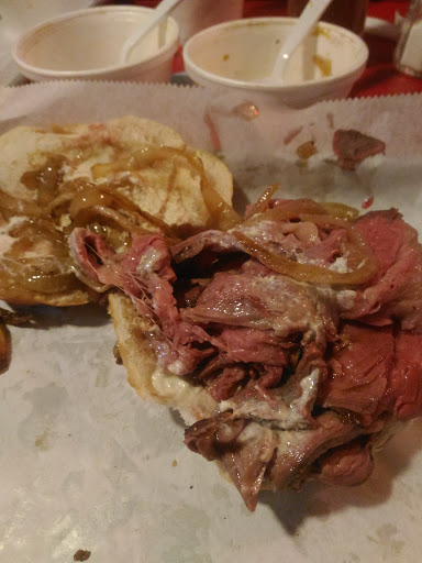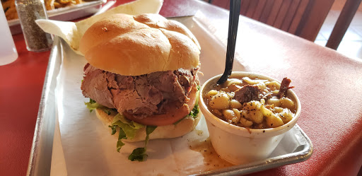 Eh is the only way to describe it. Not really pit beef, its wet roast beef. No choice of how its cooked. All food is in steam trays. I couldnt smell or see an actual smoker. It appears the food here is oven cooked. Perhaps there is a smoker outbid wet, but it doesnt taste smoked. Prices are a little steep for that you get. Got about 3/4 an inch of meat on a massive roll. Nothing to write home back. Sides were fair. Air conditioning doesnt work all that well.