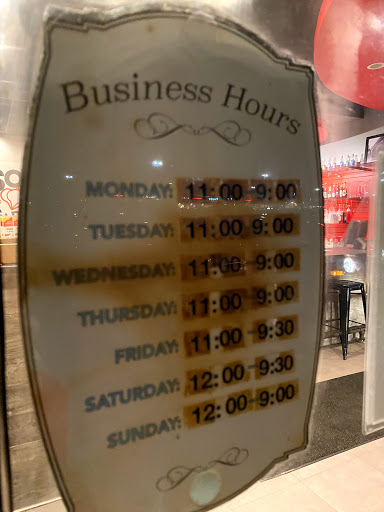 | Working: | 11AM–9PM 11AM–9PM 11AM–9PM 11AM–9PM 11AM–9:30PM 11AM–9:30PM 11AM–9PM |