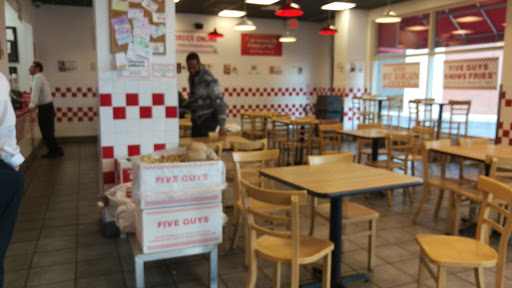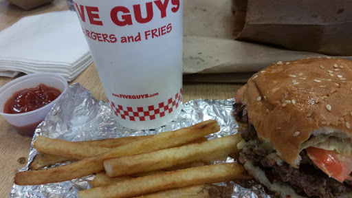 My family loves Five Guys and we have visited this location several times. The staff has been generally pleasant, though sometimes the food isnt cooked quite as well as it should be. This hasnt been a real problem, but just something to note. I think its happened on times where I ordered on my phone in advance so my burger was ready several minutes before the fries and it cooled some while waiting. Otherwise this place is a decent location. Parking used to be an issue but has improved with the new parking lot (inside the fenced area). The store is mostly clean. Overall this place is a fine place to eat Five Guys.