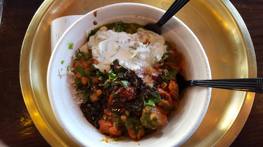 If you have no idea of what Indian cuisine is, this is an OK place to go. The food is bland and not authentic at all. But maybe you are looking for that. They allow you to pick and choose your meat and sauce, and that means that the meat was not cooked in the sauce - an essential component of Indian cooking. And they mix all your toppings together in one bowl - the mild yogurt sauce Raita and the mint sauce all in one. This allows you to enjoy the confusion of multiple contrasting flavors in one bite - but maybe you like to be confused. All said, this is the place to go if what you want is Indian food mixed together until it tastes of nothing like what its supposed to be.