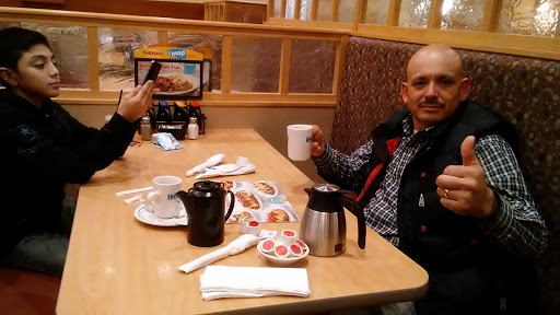 This was the most horrible Ihop experience I have ever had. When we were taken to our table the seats were still covered in food and syrup. We ordered and when my food came the eggs were so covered with salsa that you couldnt even taste the actual eggs and the avocado was so hard that a fork couldnt even pierce it. My pancakes had hard little bits of something in them and were really small and tasted like they had been heated in the microwave and my husband agreed his were just as bad. When I reported my horrible meal to my server she offered to get me more eggs but then took over 20 min to bring them to the table at which point my husband had already finished his meal and my appetite was gone. I told her I didnt want them and my appetite was ruined and asked for the bill and she still charged us for my meal of which I only at the pancakes. Horrible service and food I would avoid this restaurant and hit Bob Evans around the corner if you want breakfast in the area!