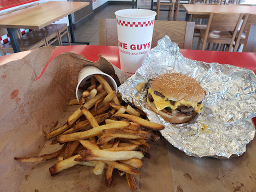 Efficient but friendly, the facility is kept spotless every time Im there. Its not the biggest five guys in the world but it sure does represent the franchise well.