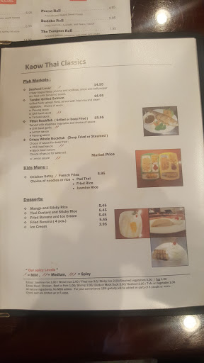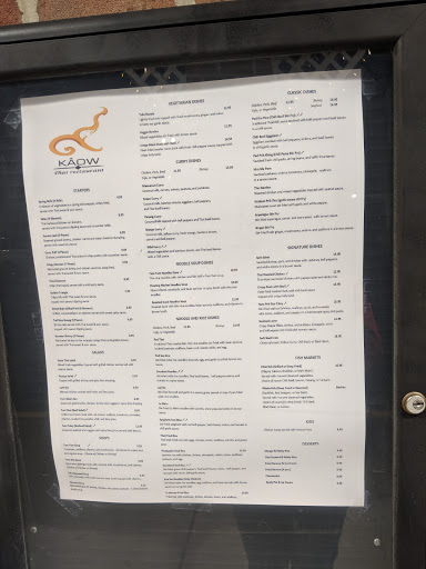 Ive eaten at Kaow Thai 2 or 3 times. Most recently, I ordered Pad Thai with chicken. Thats not a spicy dish, so the flavor comes from the green onions and other veggies. It was quite good. The Thai iced tea was good. Then we shared a dessert, sticky rice with mango, which was yummy and an attractive presentation as you would expect. Another day I enjoyed Massamun Curry at Kaow Thai. That is a mild curry that contains some potato. You cant really see this location from Crain Highway (US 301). You can reach the restaurant from the Walmart, or from Heritage Green Parkway, which intersects US 301 and intersects Washington Avenue a short distance to the east. There is a traffic signal at Heritage Green, which also gives easy access to Wawa across the highway.