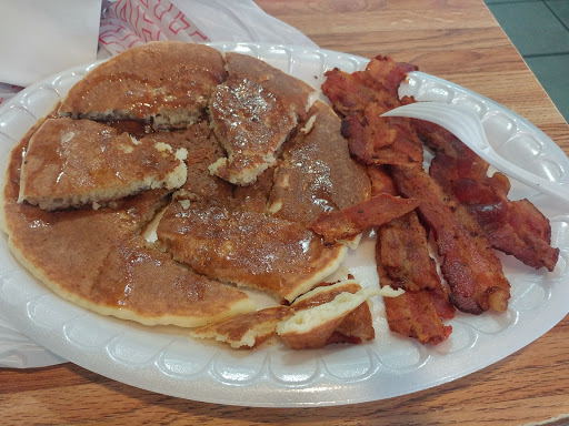 Im not going to even start on the appearance of this establishment. This is one of those situations where its okay to judge a book by its cover. I was skeptical from the beginning, based on its appearance, but my friend convinced me to go. My friend and I both ordered number 4s which include three eggs, bacon, and three pancakes. My friend substituted pancakes for French toast, a fairly simple order. After about 35 minutes we contacted the waiter asking about our order. She told us they put in the order but i guess there was an issue. They seemed to be under staffed and it was quite busy. I noticed no sense of eurgency from any of the waiters. We recieved our food about 10 minutes later after we contacted the waiter. The food was obviously sitting out for awhile. The bacon was chewy and cold and the pancakes were cold as well. We requested more bacon from the waiter and told her the bacon was cold. She came back with our bacon about 15 minutes later. I honestly feel like we wouldve been better off going to ihop or something. The food was well below satisfactory and it was late. I do not recommend anyone vist this restaurant.