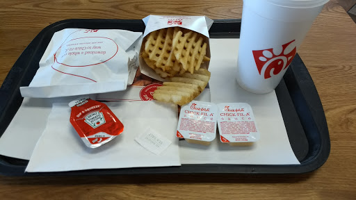 This Chick Fil A is probably the best fast food place in the area. The lines do get long but they move super quickly because of the great employees and management. Dining in is actually a nice experience, as the employees will often offer to bring something to your table or offer refills. Great food, reasonable price, awesome price!