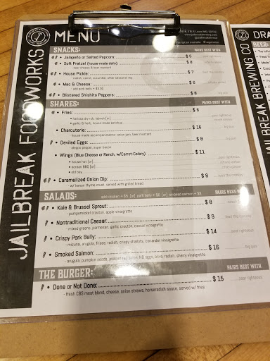 Ive been back about 5 times and love it every time! The first time we were there, my friends and I hosted a surprise 30th birthday party and the staff was so accommodating about reserving tables for us and helping us set up food for our group in the corner of the taproom. I also got to enjoy the most recent Ugly Sweater Party, which was a lot of fun. We all enjoyed the live music by Loose Ties and every time I go back to Jailbreak I appreciate the staff, the selection, and the great variety of food trucks that come by the brewery!