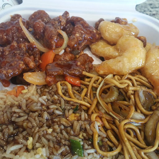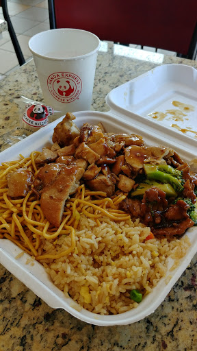This Panda Express is one of a row of stores in a lot between the northbound and southbound lanes of US-1. Ive never had trouble entering or leaving this kind of lot but left exits and left entrances are potentially dangerous. My first impression of this Panda Express location wasnt so good. On a 85-degree day in the late summer, why was the air conditioning so weak? Also, service seemed a bit slow, causing the line to go all the way to the door. Those issues aside, I thought the food was good enough and the portions were generous. Also, this is one of the few Panda Express locations where they offer a sample without my having to ask.