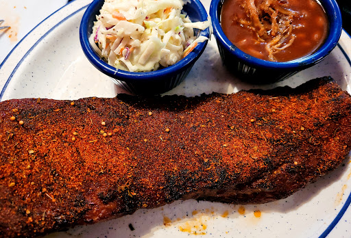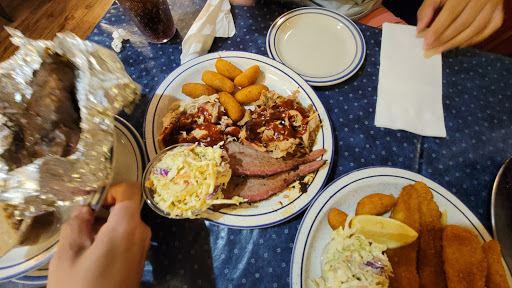 Red Hot and Blue is THE best barbeque place EVER! Their ribs, pulled pork, baked beans and slaw are the absolute best. Great atmosphere, music, service and the staff couldn`t be nicer. The hot homemade bread straight from the oven melts in your mouth. I am getting hungry just typing this and its 5:43 a.m. ...lol There is absolutely no way to get a better southern meal. Oh and there is one waiter who likes to do magic tricks and dazzle the patrons.