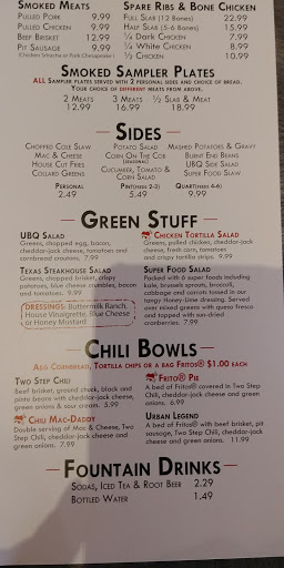 Too much smoke and rub on everything. All the meat tasted exactly the same. The only meat that tasted somewhat different was the sausage. Food was cold, cornbread was dense and dry, beans were smoked too much and had a funny seasoning in them. The food was just not enjoyable. The only good items according to my family was the salad and french fries. Back off on the seasoning and smoke, and serve the food hot. Over smoked is not real BBQ. Wont return.