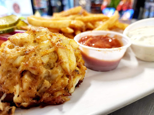 You wouldnt expect it from a bar behind a gas station, but this place has amazing crab cakes! TVs on the wall are tuned to whatever game is big that day but they will change to whatever game you want. One of my favorite places while in Maryland for 3 weeks.