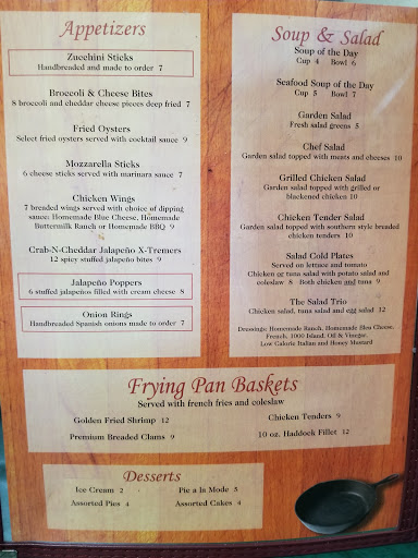 If your out of town or a local its the best home cooked food you will find in Southern Maryland. I have recommended the Fried Sea Scallops and the Fried Jumbo Shrimp, if you love seafood you will find none better in the State of Maryland. Another favorite is the Fried Zucchini, you cant beat it! Location off the path in Lusby,Maryland but if you enjoy Scallops and Shrimp look no further. I have visited many food establishments in the Maryland, Virginia and D.C. area and have yet to find a place that can beat the food. As a family we have been coming to The Frying Pan since 1971.