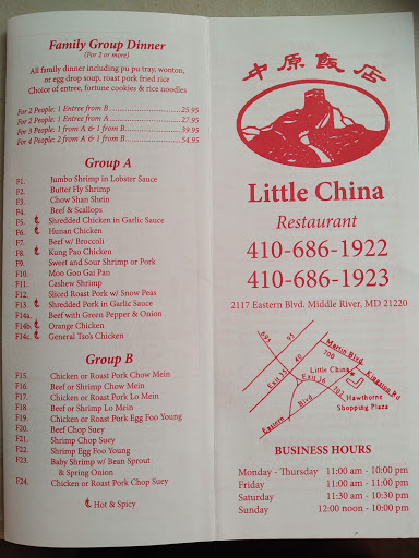 I have been going to Little China for 26 yrs.the very best chinese food ever!! staff and service is above excellent. great eat in or carry out. if you like Chinese food you have to try little China they will be ur favorite too.
