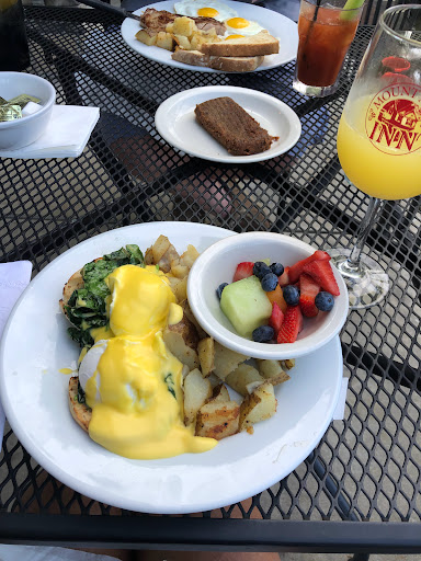 My daughter and I went to the Mt Airy Inn for lunch--and it was TERRIBLE...She had a chicken pot pie and mashed potatoes that tasted like GLUE-- no seasoning at all, not even parsley does the chef taste this stuff?. I had an au jus beef sandwich--0h my the beef was dry-flavorless and the au jus was barely warm...best thing about the entire lunch was a good pickle. Asked for the top of the sandwich on the side--came NOT as I requested--the so called swiss cheese was barely melted. Prices are not good, service ok--NOT good choices-- does everyone want a TURKEY Reuben??? Duh. WILL not go back--couldnt even get a price on the Chesapeake eggs benedict...hmmm...me thinks youll be outta there before long unless the folks have NO palate.