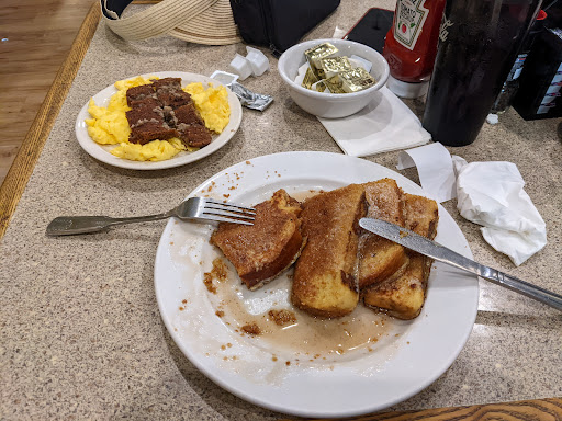 My husband and I stopped in for breakfast this morning (Sunday around 8 am). The place was busy but not swamped. We did wait for a table. We were seated and proceeded to wait 15 minutes for anyone to even notice that we were sitting there and ONLY after my husband asked if there was a server for our table. At this point, we were ready to leave however we really wanted to try the food. After placing our order, it took another 10 minutes to receive our coffee and water...then our food came out. The food was very good. Our waitress came back ONCE during the entire visit and we asked for our check at that time...it was another 8 minutes before we saw the bill. We paid and left...not sure we will return as the entire wait staff seemed like they were trying NOT to be noticed...many tables were complaining either about the wait time OR about incorrect orders. Sad as this town needs restaurants....perhaps as the staff ages together it will improve. The ironic piece of this entire visit...as we left, the staff was very friendly and several told us to have a nice day, etc...geez, too bad this much effort wasnt applied to the customers entering the restaurant.