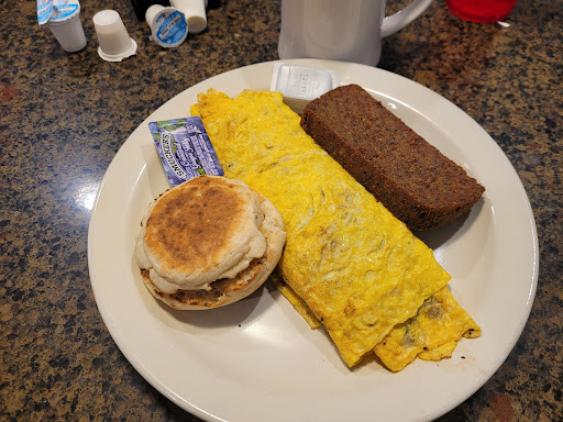 Okay, so Ive only been in here once, and it was off-peak (late lunch), but it was a good meal. Its nice they serve breakfast all day, and their burgers werent bad, either. The giant English muffin they make is pretty big and tastes okay, but its not exactly the best of its type Ive experienced. The room isnt all that big, so I could see the wait getting longish during prime meal time. Worth a visit if youre looking for an informal bite.